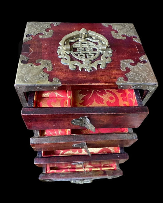 1960s. Chinese Wooden Jewelry Box with Embed Jade.