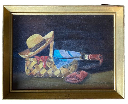 American Artist Sally Wagner oil Painting, Portrait of a Picnic Day Basket