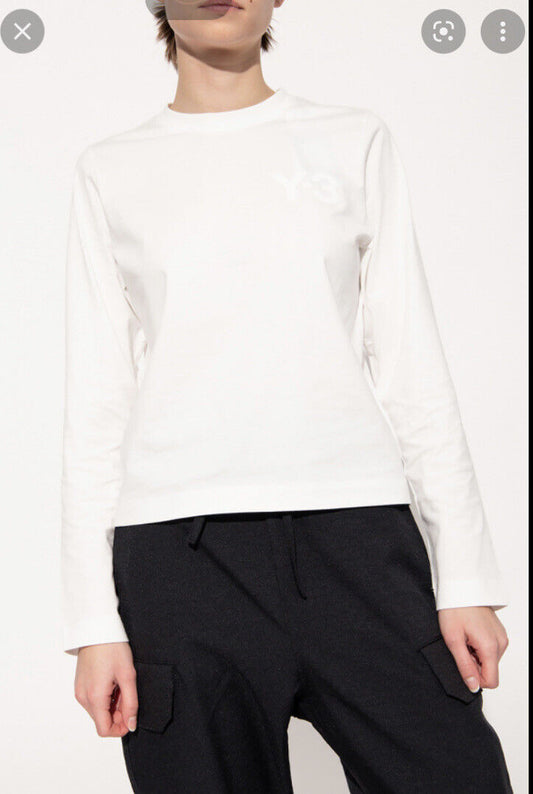 💯 % Authentic Y-3 Logo Print Crewneck Long-Sleeve Tee Woman’s Top HG6133 Us XS