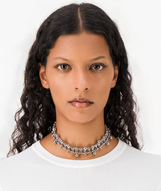 JUSTINE CLENQUET SILVER-TONE PUNK-INSPIRED LARGE LINK CHAIN CHOKER NECKLACE WITH PIERCING 90S-INSPIRED
