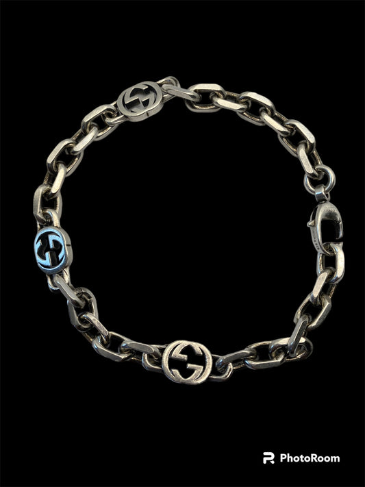 💯 % Authentic Gucci SILVER BRACELET WITH INTERLOCKING G