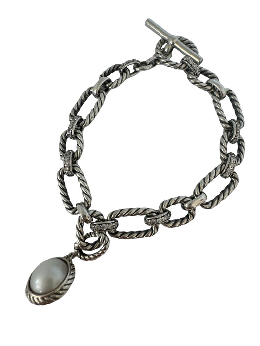 Chain Bracelet Sterling Silver with Diamonds and a Pearl