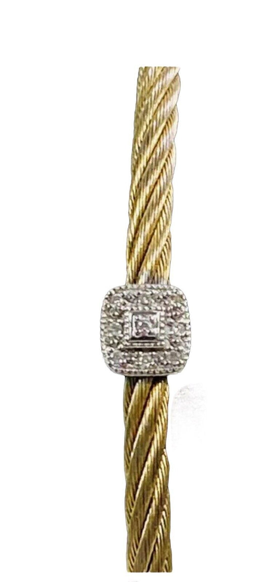 Charriol 18kt Gold Stainless Diamond Cable Bangle Bracelet