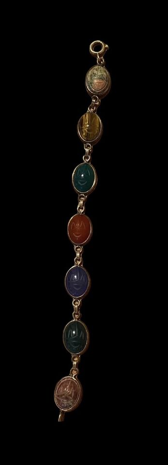 Vintage 14K Yellow Gold Chunky Scarab Beetle Chain Link Bracelet