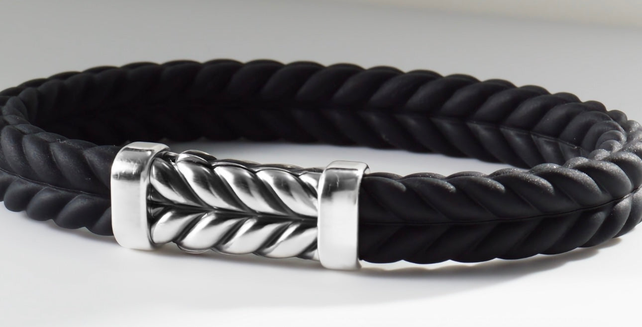 Men's David Yurman Chevron Black Rubber Link Bracelet