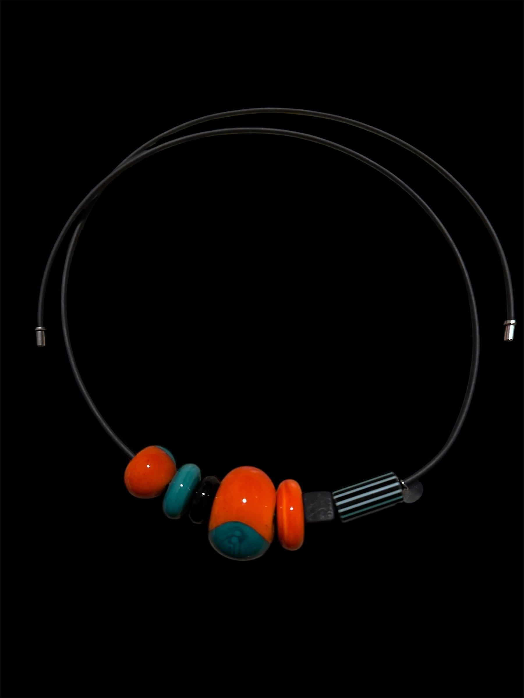 Unique Necklace with glass beads, made with the lampwork glass technique in Murano by Marina and Susanna Sent.